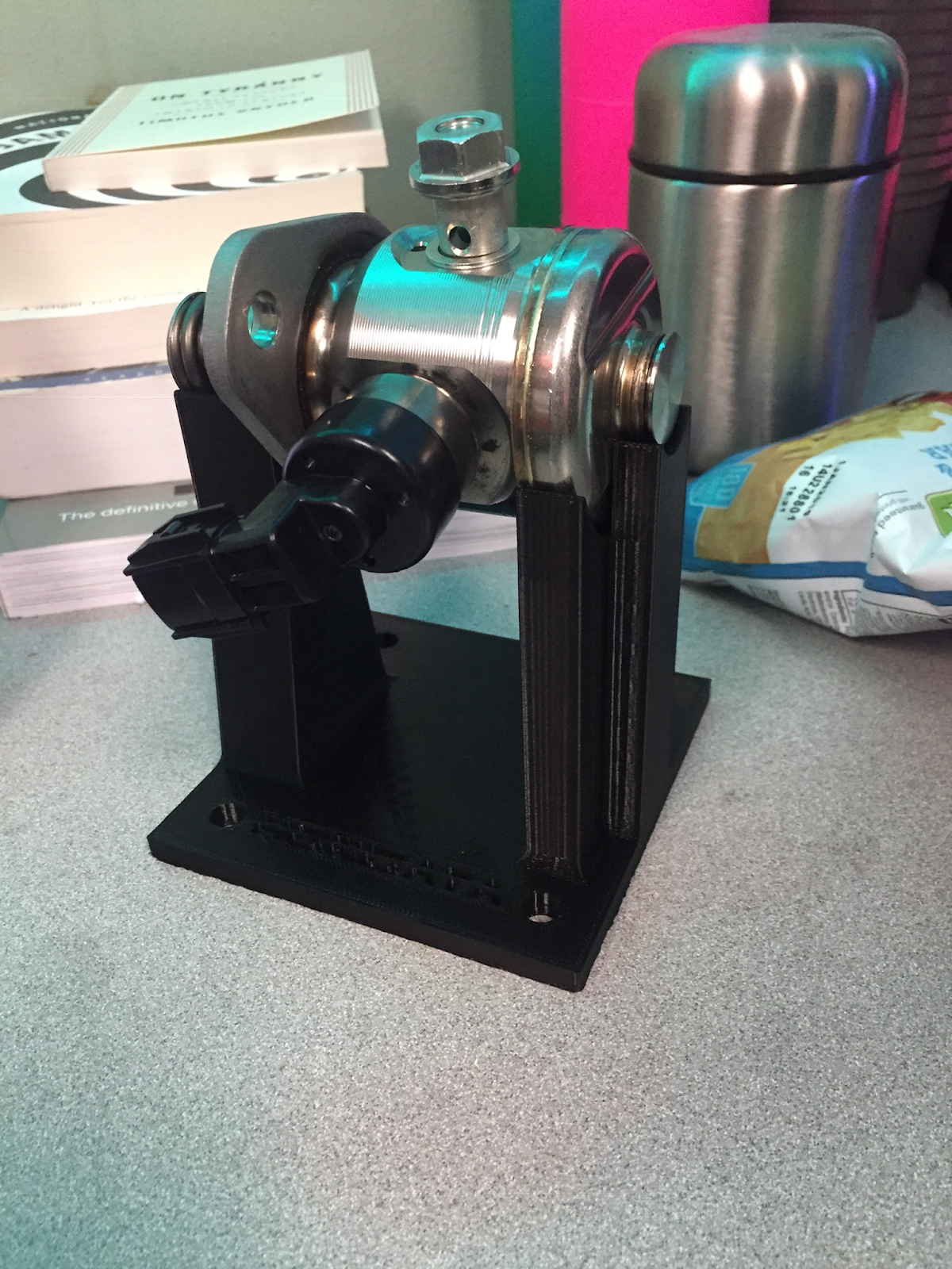 Designed and 3D printed a mount for an irregularly shaped fuel pump to allow it to be laser engraved at multiple angles.