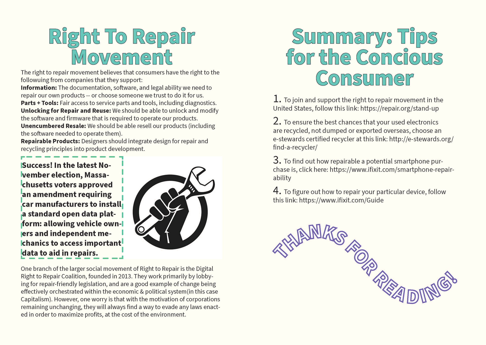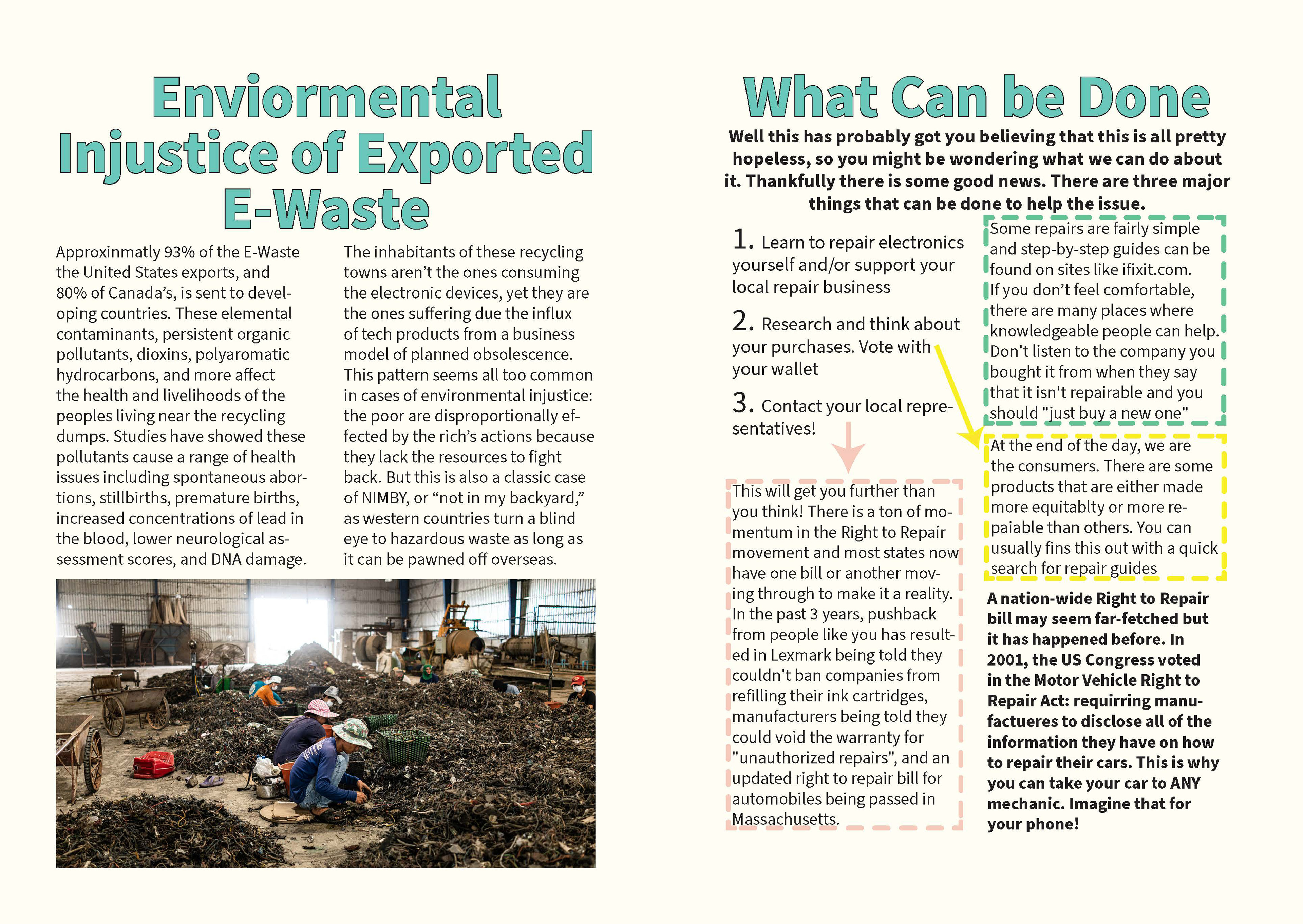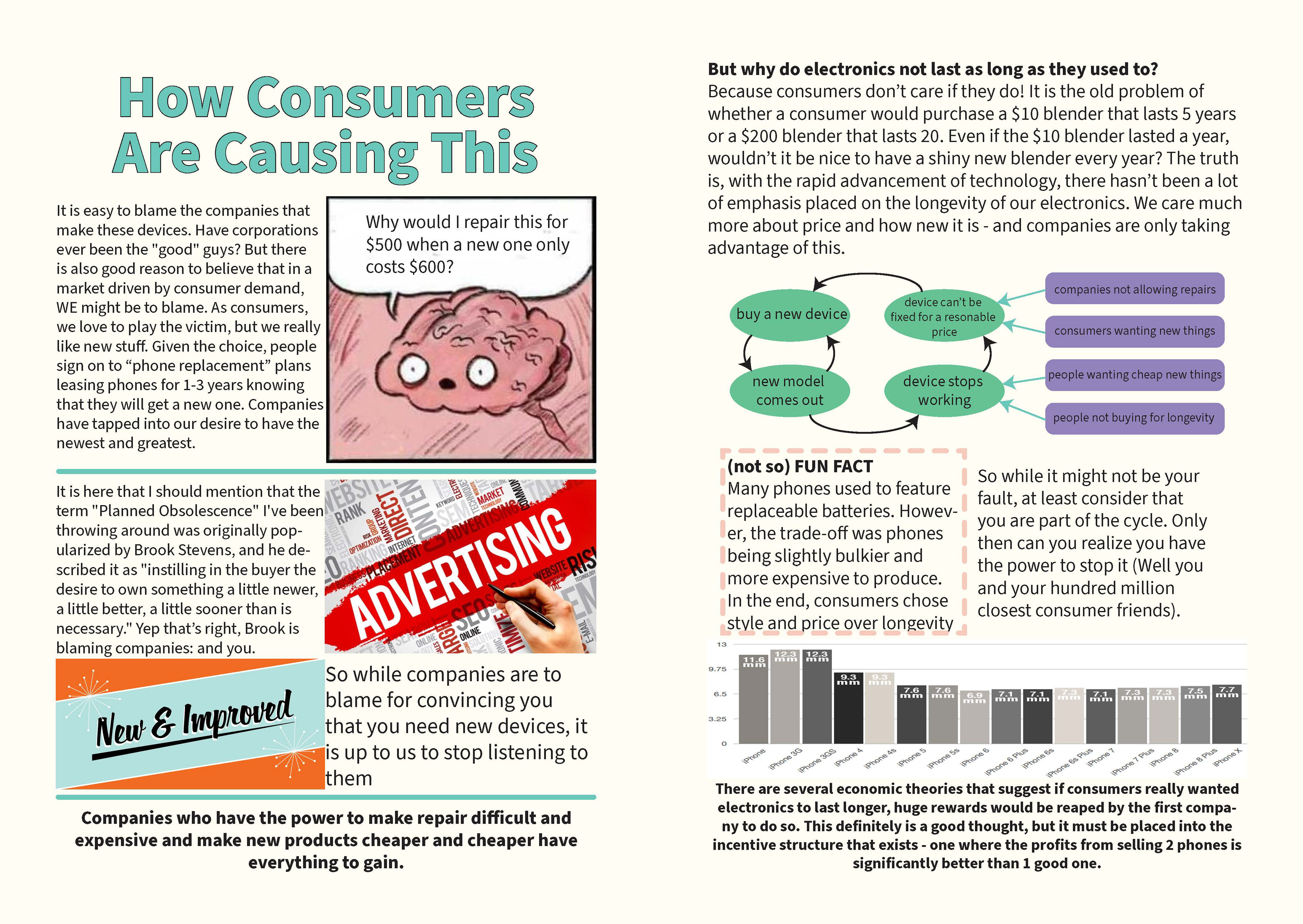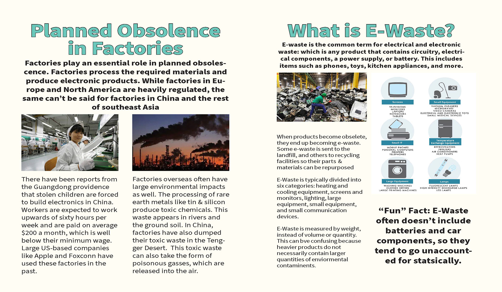 I made this 20-page booklet on Planned Obsolescence in a group of three, as part of an RPI class: STSS 2300 Environment and Society. I designed the layout of the booklet in Adobe Illustrator.